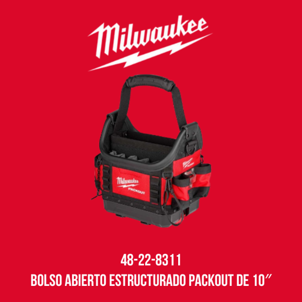 Nuestro sistema de almacenamiento modular PACKOUT™ es el sistema de almacenamiento más duradero y versátil de la industria. El bolso estructurado PACKOUT™ de 10” presenta material balístico en capas resistente al desgarro, una estructura reforzada que mantiene su forma con el tiempo y tiene una capacidad de carga de hasta 50 libras. La base moldeada resistente a impactos se conecta con otros componentes del sistema MILWAUKEE® PACKOUT™ mediante listones de bloqueo integrados. Nuestro bolso estructurado de 10″ tiene todos los accesorios metálicos, cremalleras YKK y 35 bolsillos. La correa acolchada para el hombro se guarda rápida y cómodamente en el asa para una máxima organización. Nuestro sistema de almacenamiento modular PACKOUT™ le permite personalizar y construir su propio sistema de almacenamiento de herramientas para Transporta y organiza fácilmente tus herramientas y accesorios.